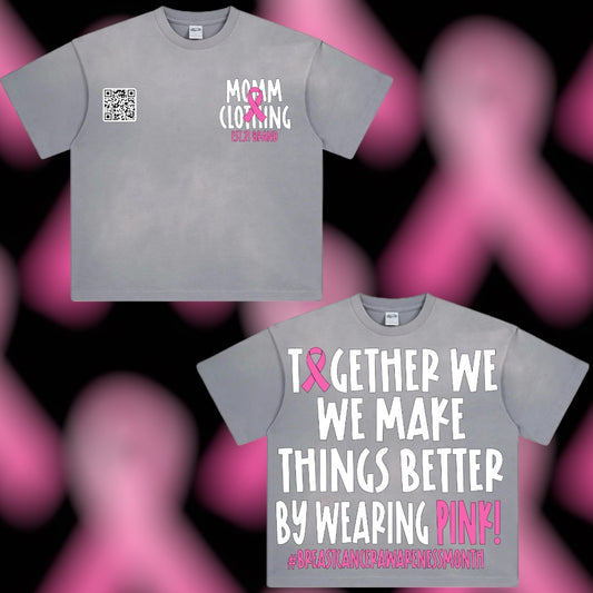 Breast Cancer Awareness Month MOMM “By Wearing PINK” Reverse Stitching Tees